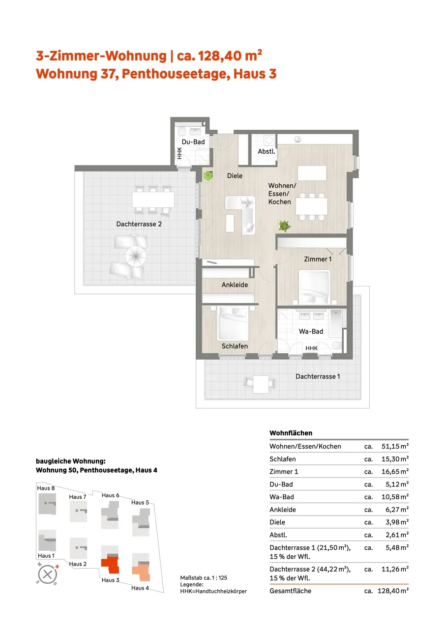 Willkommen in dieser großzügigen, lichtdurchfluteten 3-Zimmer-Penthousewohnung im 3. OG. Mit einer Wohnfläche von insgesamt ca. 128,40 m² und hochwertigen Ausstattungsmerkmalen bietet diese Wohnung den perfekten Wohnraum für Familien, Paare oder alle, die sich modernes Wohnen in bester Lage wünschen.