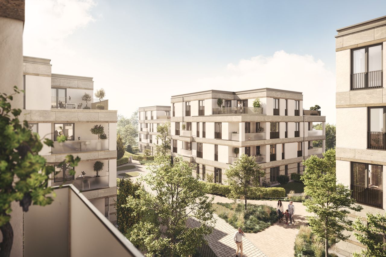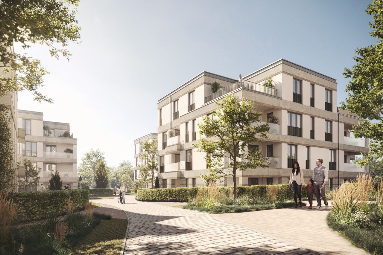 Auf dem erworbenen Areal Erich-Ollenhauer-Straße in Oberursel wird bis Ende 2023 ein neues Wohnquartier entstehen. Insgesamt wird die Wüstenrot Haus- und Städtebau GmbH hier 94 Eigentumswohnungen, 4 Stadthäuser sowie 136 ober- und unterirdische KFZ-Stellplätze umsetzen. Die acht Punkthäuser werden über einen weitläufigen Innenhof erschlossen.