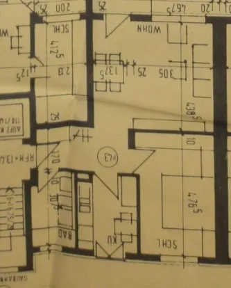 Neu verlegter Vinylboden in allen Wohnräumen, Badewanne eingemauert, Balkon zum Innenhof, Zentralheizung, Gas, Rollläden, Mieterkeller, Gegensprechanlage, Mehrfamilienhaus mit Aufzug
