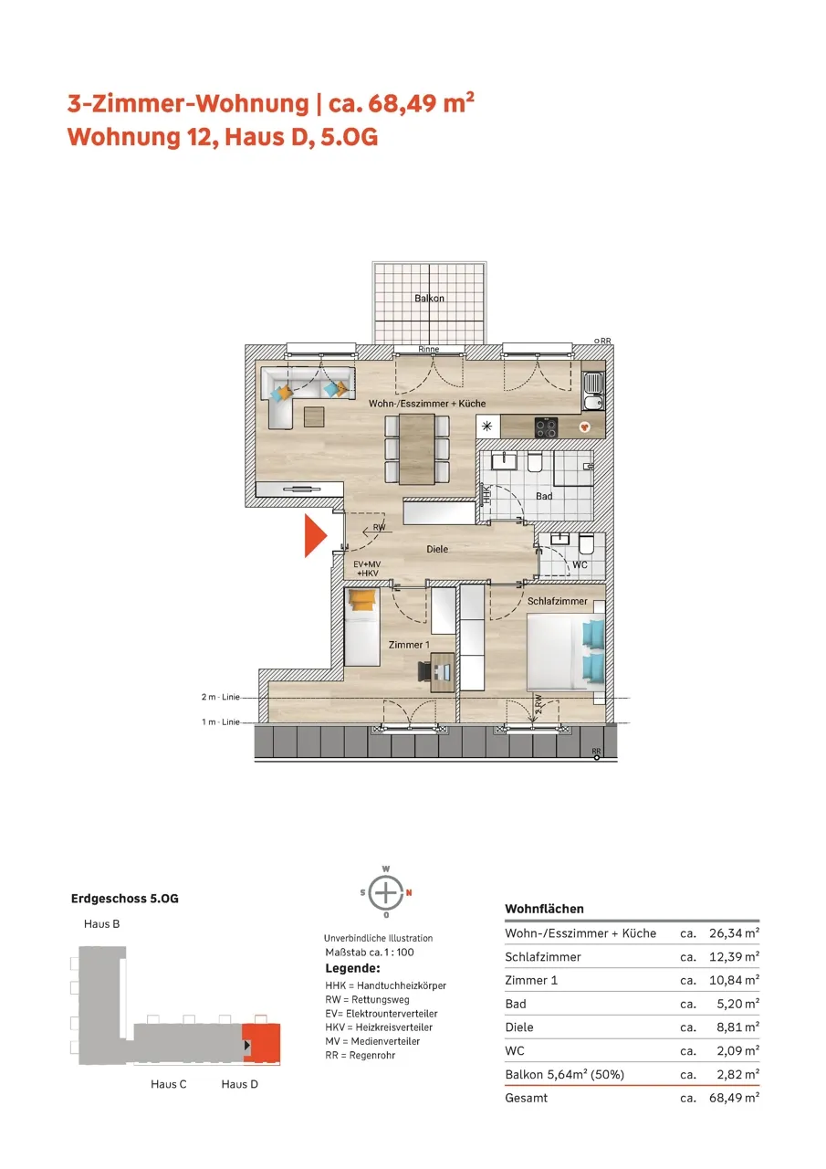 Entdecken Sie Ihre moderne 3-Zimmer-Wohnung im neuen Bauvorhaben Zollern12, wo durchdachte Grundrisse in zentraler Lage auf modernes Wohnen treffen. Die Wohnung bietet zwei Schlafzimmer, einen großzügigen Wohn-/Essbereich mit offener Küche und einen nach Westen ausgerichteten Balkon. In dem Projekt entstehen insgesamt eine Gewerbeeinheit und 43 Wohneinheiten, ausgestattet mit hochwertigen Details wie Echtholzparkett , Malervlies und bodenebenen Duschen.