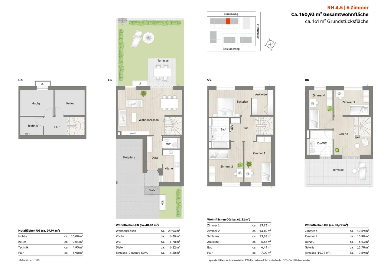 •Abgetrennte Privatgärten mit Terrasse sowie großzügige Dachterrassen