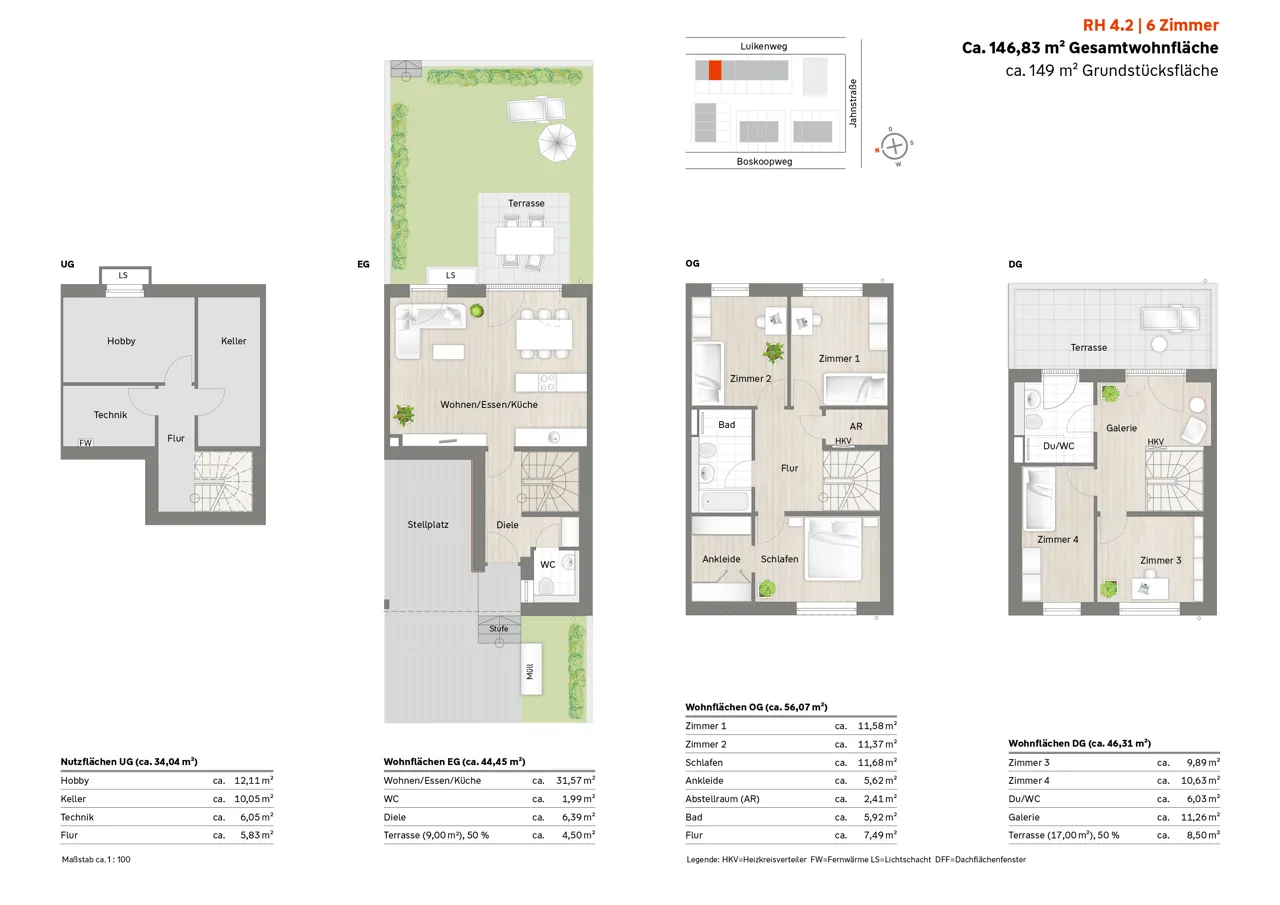 •Abgetrennte Privatgärten mit Terrasse sowie großzügige Dachterrassen