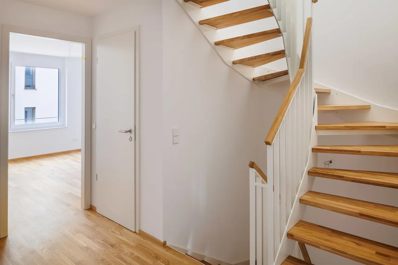 Mit ca. 146 m² Wohnfläche und einem Grundstück von rund 149 m² bietet dieses Reihenmittelhaus ein modernes Zuhause mit durchdachtem Grundriss. Die Ausstattung umfasst Eichenholzparkett, Fußbodenheizung, dreifach verglaste Fenster, elektrische Rollläden sowie Sanitärelemente von Villeroy & Boch und Hansgrohe. Für zusätzlichen Komfort sorgen eine bodengleiche Dusche, hochwertige Fliesen von VITRA und eine Gegensprechanlage mit Kamera.