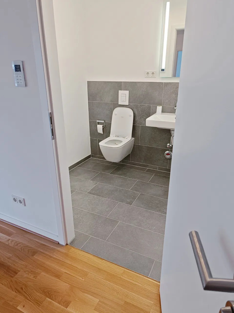 • Bodenbelag: Echtholzparkett mit einzeln regulierbarer Fußbodenheizung im Badezimmer.