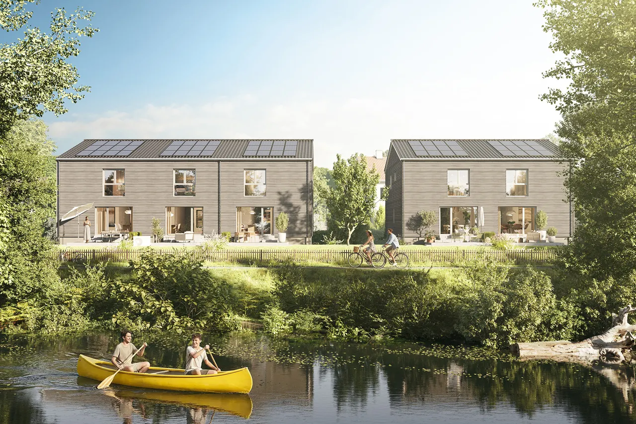 Die Obergeschosse entstehen in Zusammenarbeit mit Baufritz in wohngesunder Holzbauweise und bieten ein natürliches, ausgeglichenes Raumklima – für ein Zuhause, das sich jeden Tag gut anfühlt.