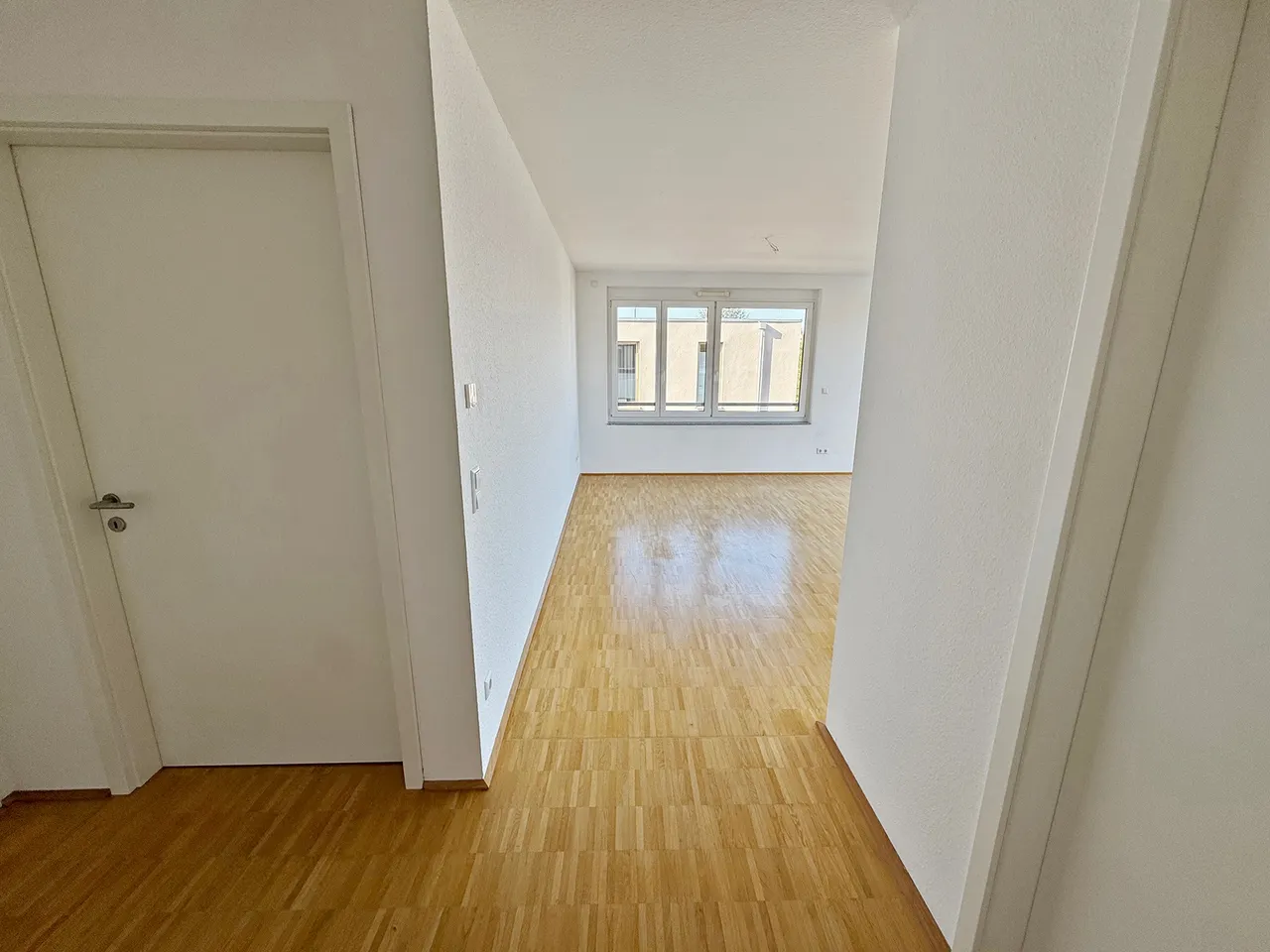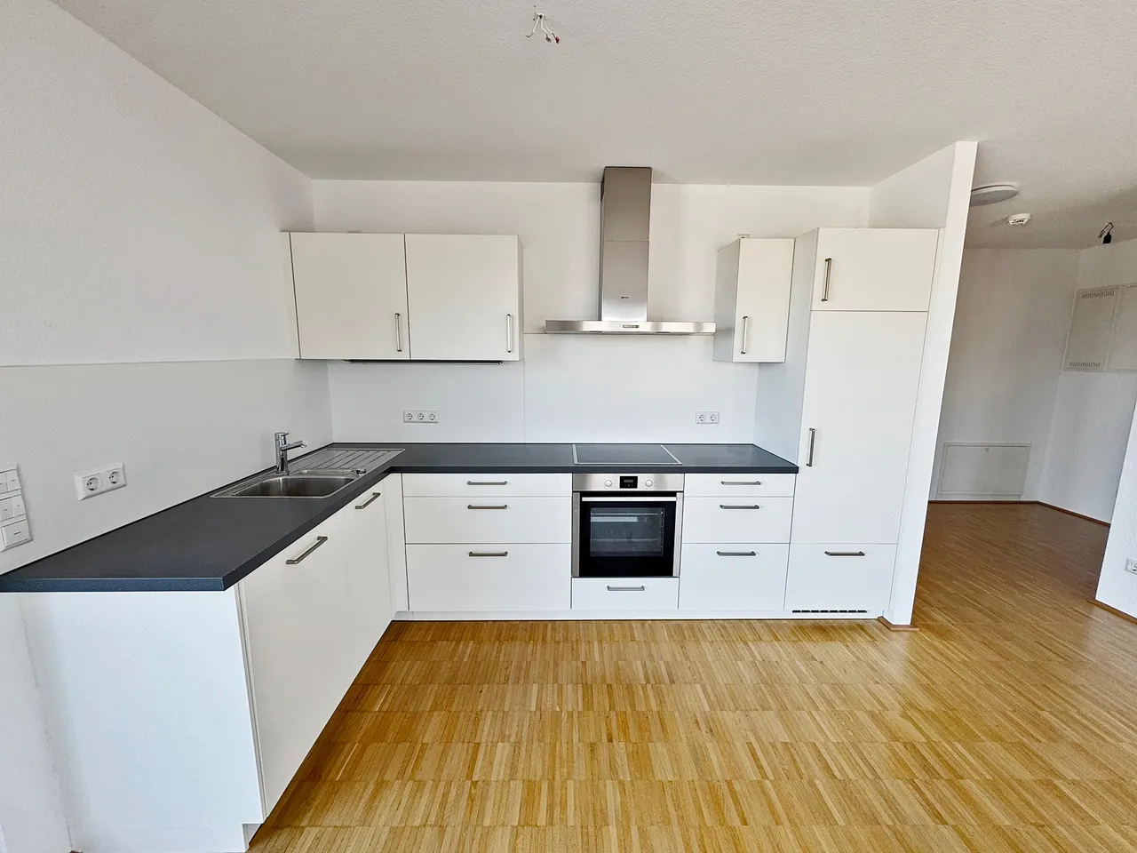 Die Wohnung bietet Ihnen einen großzügigen, lichtdurchfluteten Wohn- und Essbereich inklusive hochwertiger Einbauküche zuzüglich 75 € mit Geräten.. Von hier hat man Zugang auf die große Terrasse.
