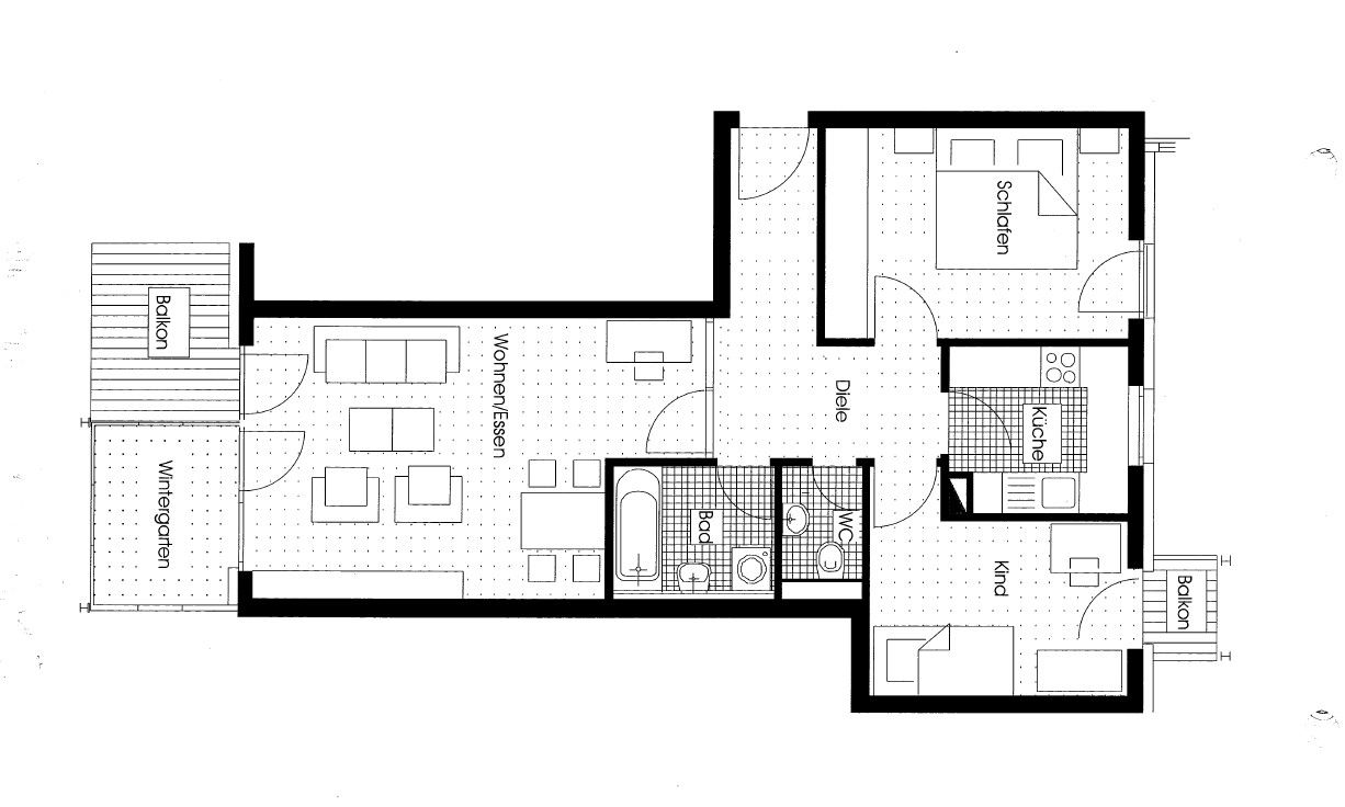 Die Wohnung verfügt über einen Wintergarten und 2 Balkone.