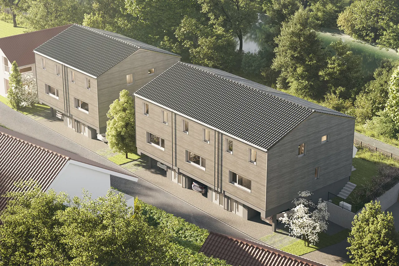 Die Obergeschosse entstehen in Zusammenarbeit mit Baufritz in wohngesunder Holzbauweise und bieten ein natürliches, ausgeglichenes Raumklima – für ein Zuhause, das sich jeden Tag gut anfühlt.